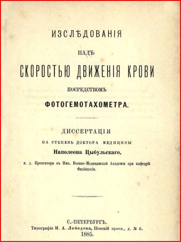 Il fut l’un des physiologistes les plus éminents du 19e siècle. Il est né le 14 septembre 1854 à Krzywonosy (aujourd’hui en Biélorussie). Après avoir terminé ses études secondaires à Minsk, il part en 1875 étudier à l’Académie militaire de médecine et de chirurgie de Saint-Pétersbourg où il se liera d’amitié avec un autre étudiant, Ivan Pavlov - le futur prix Nobel de physiologie qui, vous le savez, donnera son nom au fameux “réflexe de Pavlov”. Dès les premiers mois de ses études à l’Académie, Cybulski va montrer un intérêt particulier pour la physiologie, dont l'éminent maître de conférences était le professeur Ivan Tarkhanov qui l’apprécie beaucoup et le prend dès lors en amitié. Il obtiendra son diplôme de médecin en 1880 avec la plus haute distinction : cum eximia laude. Il va ensuite travailler comme assistant au sein de cette même Académie où il va, entre autres, construire un appareil pour enregistrer photographiquement la vitesse du flux sanguin dans les vaisseaux - appareil qu’il nommera fotohemotachometr - avec lequel il va pouvoir déterminer les changements dans la vitesse de l’écoulement du sang par rapport aux phases de la fréquence cardiaque et du rythme respiratoire.