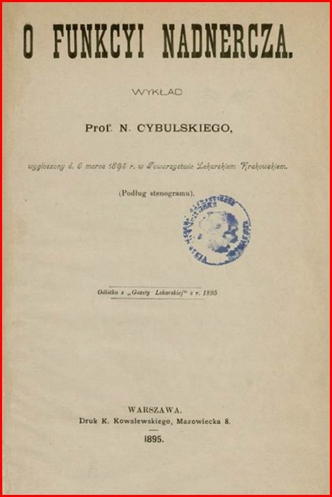 Il faut noter que dès 1716, l'Académie des Sciences de Bordeaux avait annoncé un concours doté d’une forte récompense pour celui qui donnerait une réponse satisfaisante à la question : à quoi servent les glandes surrénales ? Ce n’est que Cybulski qui donnera avec Szymonowicz la bonne réponse… En effet, il faut bien avoir conscience qu’à la fin du 19e siècle, personne ne connaissait l’existence d’une quelconque régulation hormonale et encore moins celle de la notion d’hormone ! La nadnerczyna était donc la première substance connue à être secrétée dans le sang et provoquer un effet physiologique très puissant. L’appellation d’adrénaline ne lui sera donnée qu’en 1911 par le chimiste japonais Jōkichi Takamine qui, alors installé à Baltimore (USA), en sera le premier à produire des extraits purs. Le succès obtenu par Cybulski par sa découverte va évidemment le motiver à poursuivre ses recherches. C’est à ce moment-là qu’il étend sa chaire, devenue en fait pratiquement un institut de recherche dont il est le patron. Il publiera de nombreux écrits scientifiques sur l’action et sur le rôle de l’adrénaline. Les résultats de ses recherches sur l’influence hormonale de la médullosurrénale serviront de base à l'endocrinologie d’aujourd'hui.