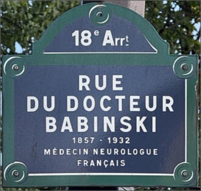 Ses travaux en physiologie du système nerveux et en neuropathologie ont été révolutionnaires pour le développement de la neurologie. Il a découvert l'un des signes neurologiques les plus importants, indiquant une lésion du faisceau pyramidal responsable de la commande motrice volontaire. C’est le réflexe cutané plantaire, qui a été nommé signe de Babinski en son honneur. À la stimulation de la plante du pied, la personne atteinte répond par une extension du gros orteil de façon lente, au lieu de fléchir les orteils par réflexe. |