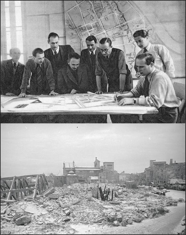 1945 - Le bureau du Conseil national de la ville de Varsovie approuve la création de l'Office pour la reconstruction de la capitale (BOS). Sa direction est confiée à l’ingénieur architecte Roman Piotrowski. Durant la première période, seront employés par le BOS près de 1 400 personnes, dont 351 ingénieurs, 534 techniciens et dessinateurs ainsi qu’un groupe d'experts. Par contre, durant la phase de réalisation, seront employés par le BOS plus de 9 500 personnes. Le premier plan de Varsovie en 1945 définit les fonctions de la ville, ainsi que la population souhaitée dans la capitale et son “aspect social”. Varsovie est adoptée comme capitale “dans le plein sens du terme”, et donc à côté du “centre à disposition de l’État” devraient fonctionner une industrie hautement qualifiée, mais aussi des universités et des établissements scientifiques. Pour les premières années, une population de 800 000 est prévue et par la suite pas plus d’1,2 million d'habitants. On adopte l’aménagement fonctionnel, à savoir la superficie de la ville consacrée aux importantes catégories fonctionnelles : zones résidentielles, industrielles, récréatives. On prévoit trois espaces fondamentaux : des lotissements résidentiels, des cités-dortoirs et des quartiers. La ville est divisée en trois : le Centre-ville, avec une structure compacte et une ceinture verte abondante, rassemblant les nombreuses fonctions d’une capitale ; la Grande Varsovie, avec de la verdure disposée de-ci, de-là, remplissant la fonction résidentielle ; le Complexe municipal de Varsovie avec des cités librement disposées dans les bois. Dans ce premier plan de la nouvelle Varsovie, les urbanistes désirent concentrer la vie socio-culturelle de la capitale sur les terrains de la capitale historique, limiter le logement familial dans le centre-ville, et regrouper là les universités. On prévoit trois grands centres industriels : le quartier industriel du centre-ville à Wola pour les entreprises inoffensives pour l’environnement, Kamionek et Żerań sur la rive droite de la Vistule. En ce qui concerne la communication, on prévoit à côté des anciens ponts, trois nouveaux ponts, une voie de chemin de fer rapide municipal, trois grands aéroports et un sportif. Le BOS sera définitivement supprimé en 1951 en vertu d’une ordonnance du Conseil des ministres. ‹LS› |