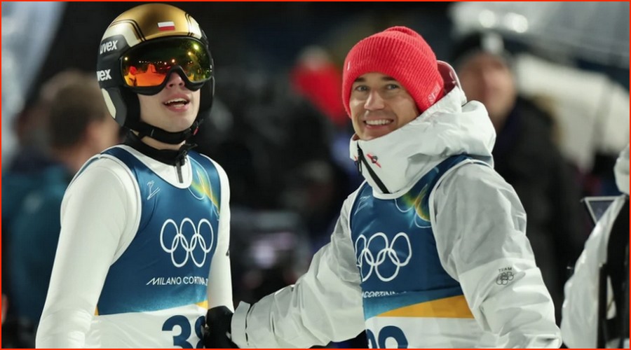 Passage de témoin entre Kamil Stoch (3 médailles d’or et une de bronze) et Kacper Tomasiak (1 argent et une bronze)… |