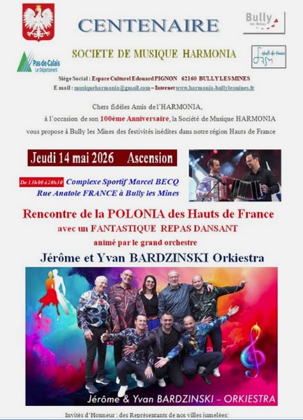 CENTENAIRE DE LA SOCIETÉ DE MUSIQUE “HARMONIA” REPAS DANSANT ANIMÉ PAR Jérôme et Yvan BARDZINSKI Orkiestra