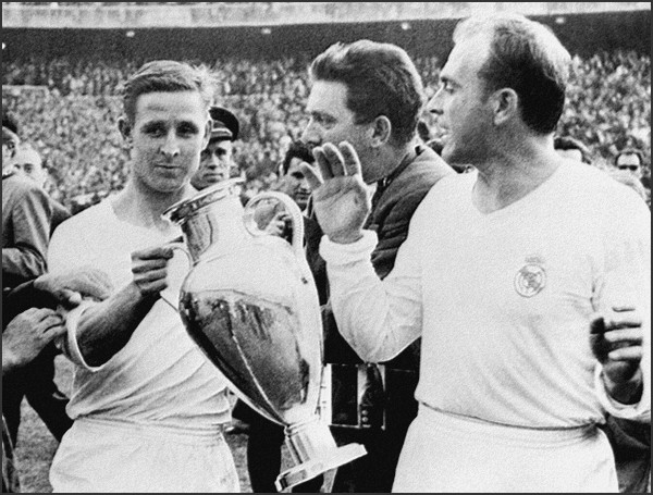 1957 – Madrid – Coupe d’Europe : Raymond Kopa et Alfredo Di Stéfano devant 120 000 spectateurs ! |
