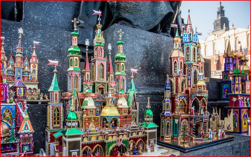 *Aujourd'hui, ces crèches se caractérisent par une accumulation d'éléments miniaturisés de l'architecture historique de Cracovie, qui sont traités et combinés de manière fantaisiste. Les crèches sont non seulement conçues avec précision et richement décorées, mais également électrifiées et mécanisées, ce qui renforce encore l'effet final et rend leurs structures plus attrayantes.