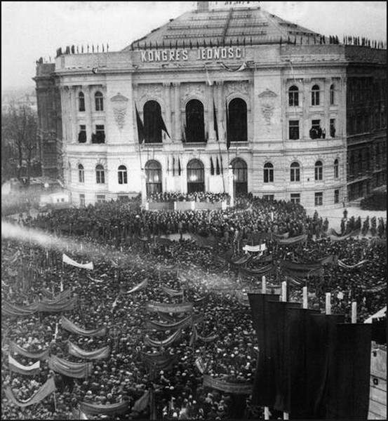 1948 - Ouverture à Varsovie du congrès d'unification du PPR (parti ouvrier polonais – communiste - un million de membres) et du PPS (parti socialiste polonais - plus de cinq cent mille membres), aboutissant à la création du PZPR (Parti ouvrier unifié polonais). Ce congrès a été convoqué sous la pression des militants du PPR qui souhaitaient créer un système de parti unique en Pologne. Un PPS fort était pour eux l'un des derniers obstacles sur ce chemin, car le mouvement paysan a pratiquement cessé d'exister après la fuite de Stanisław Mikołajczyk.